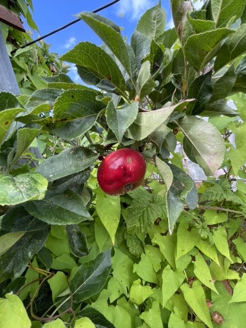 There was Hedge Bindweed, Large Bindweed, Sun Splurge, Lemon Balm, Stinging Nettles – weeds, weeds and more weeds. Then some raspberries, in amongst the weeds admittedly, but still something good. in the back corner some grapes strung on some old fencing and an apple tree a previous plot-holder has tried to train along some wires strung between poles.